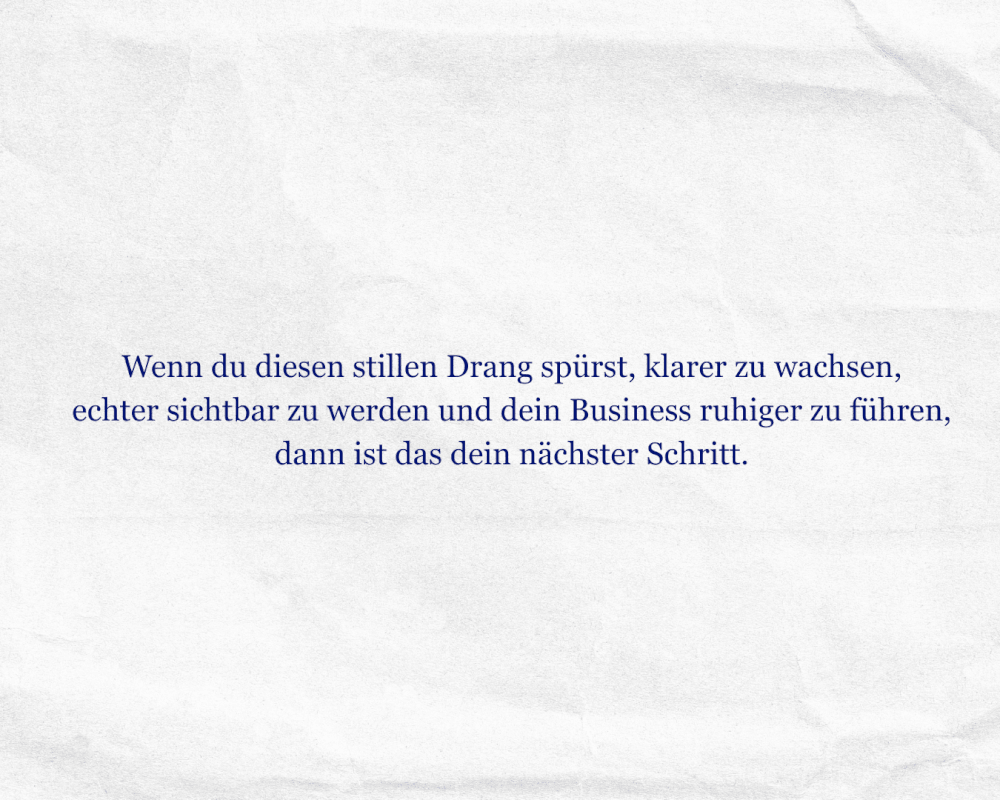 Ja. Gerade dann kann dieser Raum sehr wertvoll sein, weil es oft nicht mehr um mehr Input geht, sondern um feinere Ausrichtung, klarere Entscheidungen und ein Business, das dich wirklich trägt.